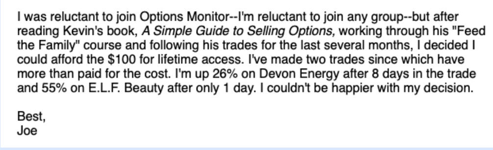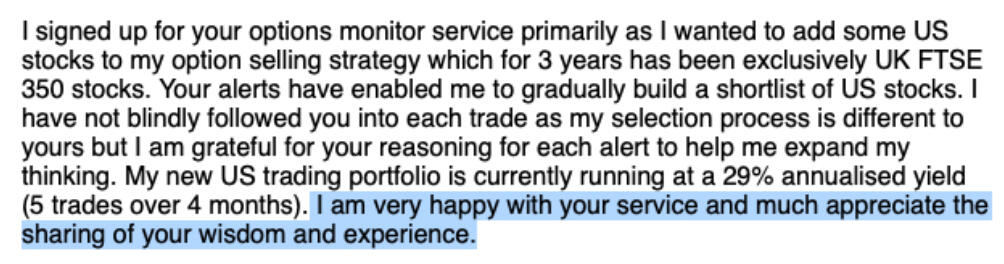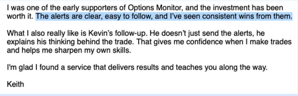 Disclaimer: Club members have not been compensated for their testimonials.The information provided by Options Monitor is for educational purposes only and should not be considered financial advice. Options trading involves risk and is not suitable for every investor. Past performance is not indicative of future results. Always do your own due diligence before placing any trade.Kevin Smith / Options Monitor is not authorised or regulated by the Financial Conduct Authority. Nothing on this website should be construed as investment advice or a personal recommendation.Simple Refund Promise: Not happy? Just reply to any email within 30 days for a full refund β no questions asked. (Refunds not available once youβve accessed member content or downloaded tools.)Need help? e: [email protected]